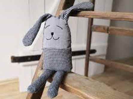 Material: Baumwoll- und Wollstoff, Füllstoff Baumwolle oder Jute.